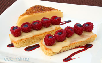 La tarta se prepara en una bandeja de horno de laterales altos, para una tarta más pequeña utilizamos un molde rectangular de bordes altos, con la mitad de los ingredientes.